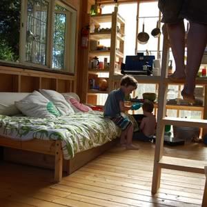 - Look at this teeny tiny cabin. Four people and a dog in 180 square feet.