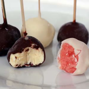- Yum! Ice cream pops! I was just talking to a friend about making ice cream pops by mixing cake and ice cream and dipping it in chocolate.